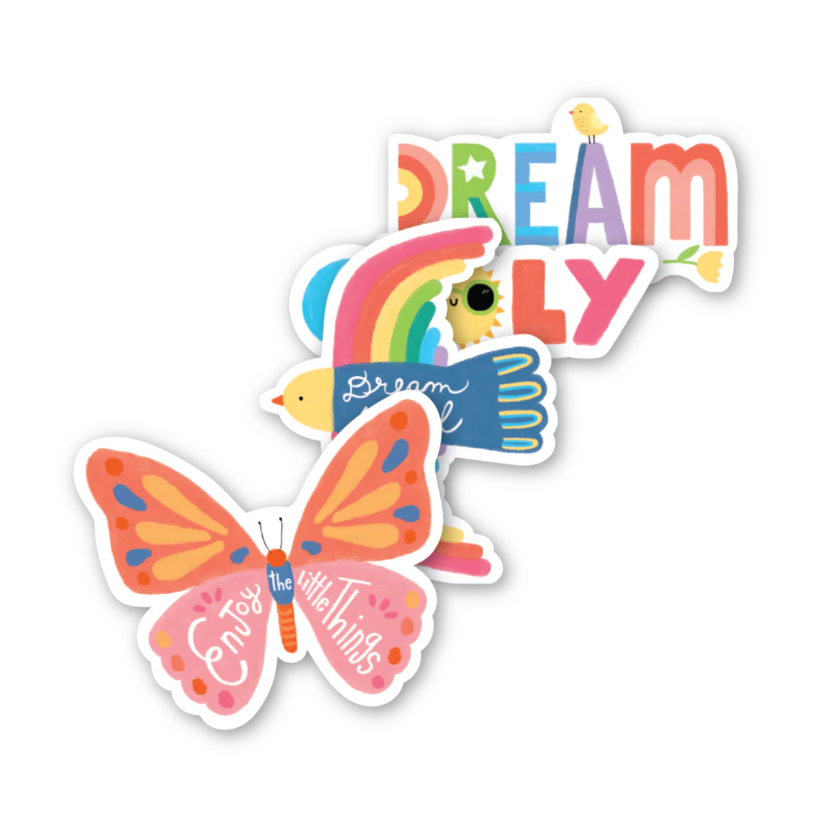 We could all use a reminder sometimes to focus on enjoying life and to keep dreaming! That’s what makes these waterproof vinyl stickers so special. Designed in a gorgeous rainbow of colors, these four inspirational stickers can be placed on accessories like laptops, water bottles, lunch boxes, and dream journals - any place that’s regularly visible, so we remember to be grateful for what we have and to keep striving toward our goals! These pretty stickers also make a sweet gift for kids on the cusp of new adventures, such as starting a new school, having a big birthday, or beginning college!