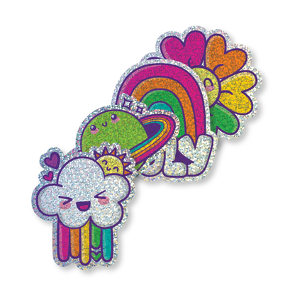 - Each sticker has a holographic glitter treatment
