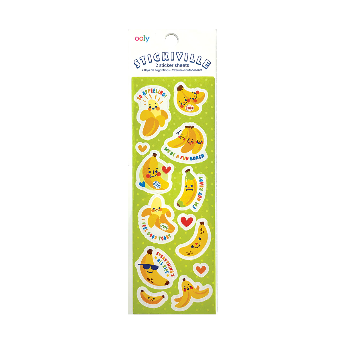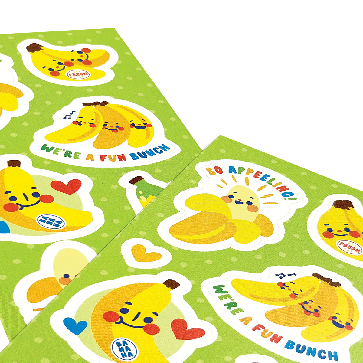 - Includes two sticker sheets of punny banana-themed stickers
