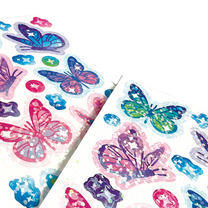 The butterflies are always in flight in Stickiville! These sticker sheets feature beautiful holographic glitter butterfly stickers that are simply enchanting! Stick them on anything that could use a touch of beauty, like a plain notebook, journal, or backpack.