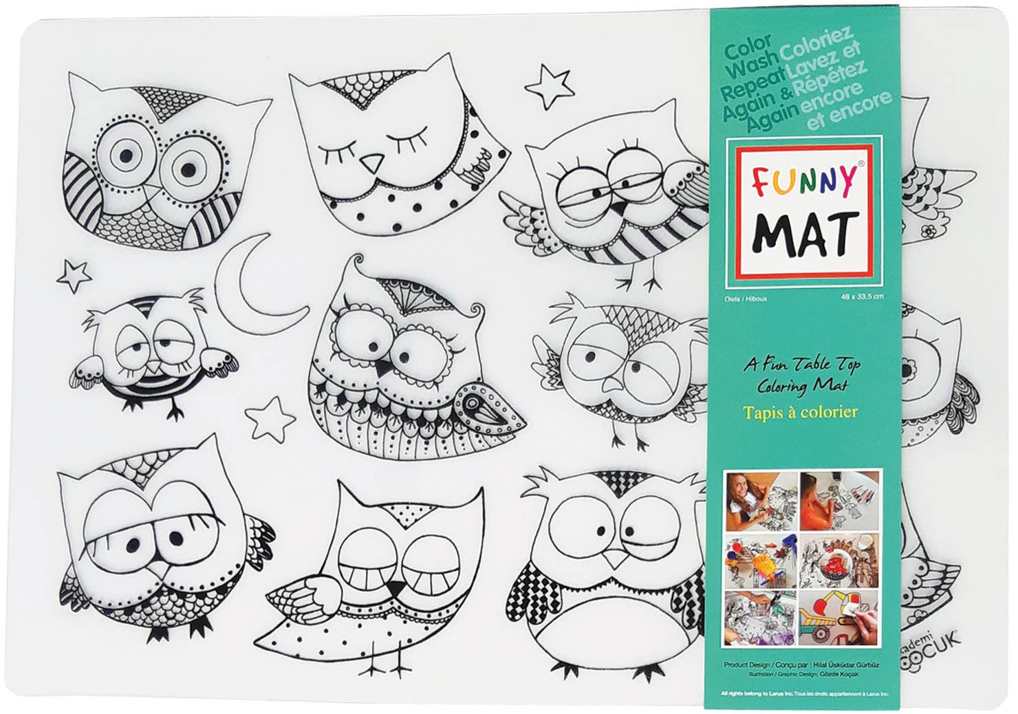 Funny Mat is a table top cover that can be used for craft projects such as drawing, coloring or as a protective mat for painting, plasticine and play dough or as a placemat. The designs on Funny Mat can be colored with water-based, washable markers. Funny Mat is made of polyproylene and is recyclable and reusable. Each mat size is 33.5 x 48 cm (13.2" x 18.9").