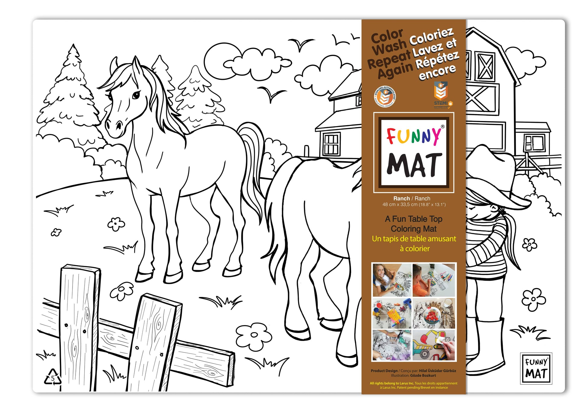 Funny Mat is a table top cover that can be used for craft projects such as drawing, coloring or as a protective mat for painting, plasticine and play dough or as a placemat. The designs on Funny Mat can be colored with water-based, washable markers. Funny Mat is made of polyproylene and is recyclable and reusable.