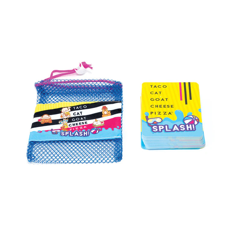 Taco Cat Goat Cheese Pizza SPLASH is making waves! This waterproof version of the wildly popular game is perfect for poolside play, beach days, or any splashy adventure. Featuring hilarious water-themed illustrations like a taco lounging in a floatie or a goat goofing off with a beach ball - this deck is ready to dive into the fun.