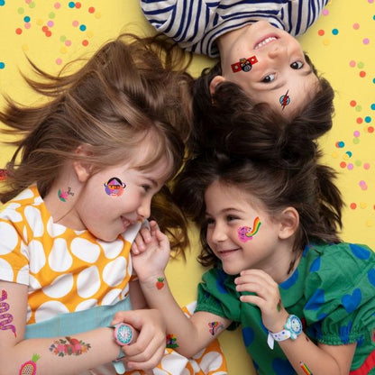 Two sheets of temporary tattoos featuring heroes with superpowers and their enemies. Children will love these tattoos, complete with metallic details! They’re pre-cut to make them easy to use, and transfer using a little water.