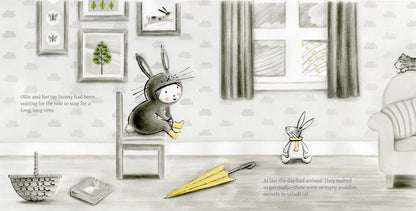 Ollie and her favorite friend bunny have been waiting for the rain to stop and spring to come, and at long last the sun arrives. Ollie puts on her rain boots, wraps bunny in a warm scarf, and the two set off for exploring. Then a sudden breeze whispers past and bunny’s nose twitches and their magical adventure begins…