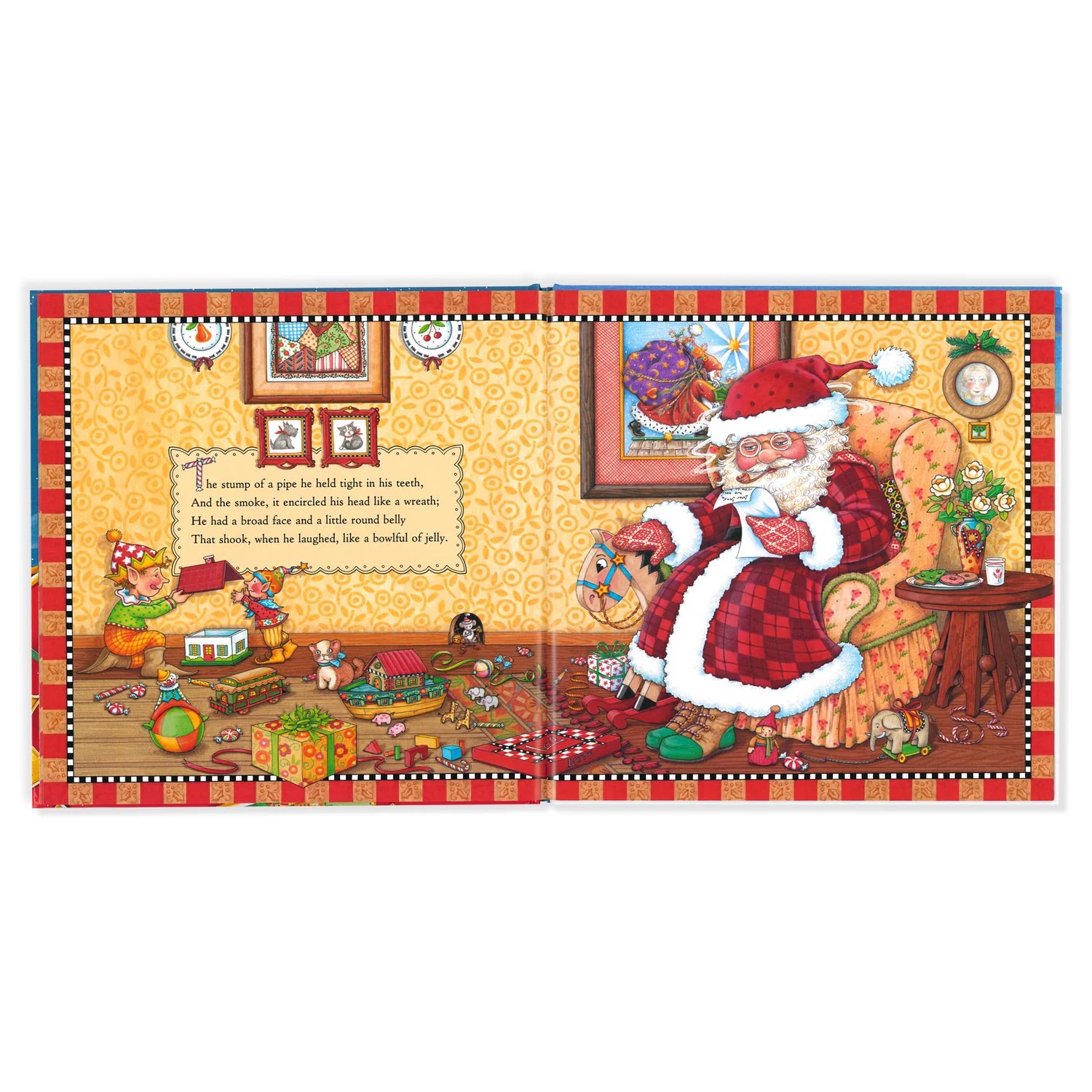 Readers young and old are invited into the enchanting world of Mary Engelbreit in this sparkling edition of Clement C. Moore's classic poem, The Night Before Christmas. It is the night before Christmas, in a house so cozy and colorful, so filled with expectation, so dusted with Christmas magic that only this beloved illustrator could have created it. Shhh. A mouse is asleep in its snug den and children are dreaming as sugarplum fairies flutter around their bed. Then, there's the jingle of bells… For this merry celebration of Christmas, Mary Engelbreit has filled every page with bewitching details, rich color, and memorable characters. These include a bevy of mischievous elves, an adorable mouse, and a lovable, bespectacled Santa. The images in Mary's joyous vision will bring discovery and delight to generations of readers.