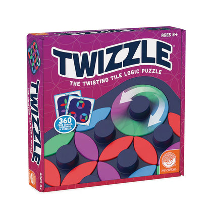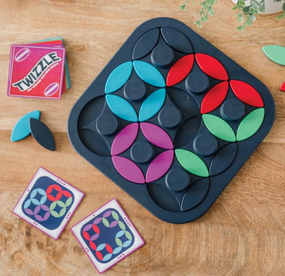 Twizzle is a single-player game of logic and strategy that will twist, click, and challenge your brain! Players begin with one pattern and must twist the wheels and shift the tiles until the end pattern is reached. With 360 card combinations, you can progress from beginner to expert while boosting brain activity and building confidence. Compete against yourself or others with various levels of difficulty and satisfying tactile sensations.