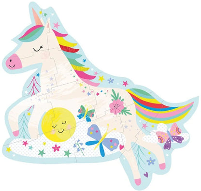 Perfect for the unicorn lover, this Unicorn Jigsaw puzzle features 12 large, chunky shaped pieces with foiled elements. This puzzle makes a great gift, packed into an adorable unicorn shaped box. For ages: 2+ years.