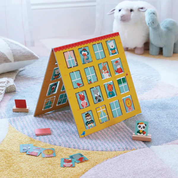 Who’s that at the window? Is it the hungry monkey, the drumming sloth or the waving wallaby? Be the first to guess your friend’s mystery animal!