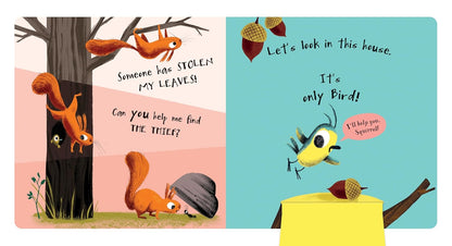 Squirrel and Bird go looking for the Leaf Thief and the missing leaves―inside the birdhouse? Behind the tree stump? And while they don't find a thief (it was the wind!) they DO find lots of other delightful discoveries! Following up on the fabulous New York Times Bestseller success of the Leaf Thief books, this board book has felt flaps that add tactile, interactive fun perfect for the youngest readers.