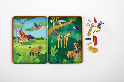 Mudpuppy's Wild Mix-Up Magnetic Build-it includes 2 illustrated scenes and 3 sheets of mix and match magnets for creating your own wild animals! The sturdy tin package offers hours of imaginative play with easy cleanup and storage of pieces. Mudpuppy's Magnetic Tins are the perfect children's travel toy and quiet time activity.