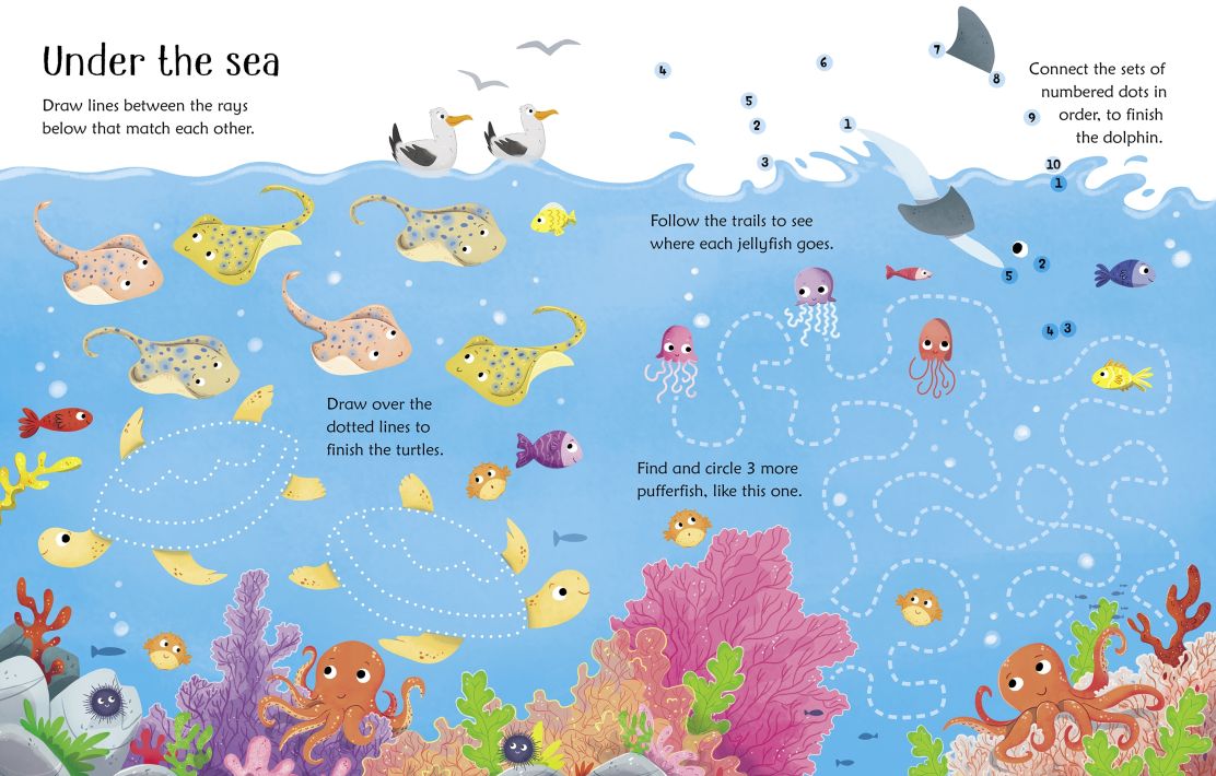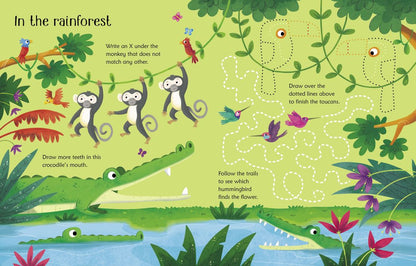 This fun book is a playful way for young children to develop their counting, observation and pen-control skills. Spot the differences between koalas, join the dots to make a dolphin, draw spots on a snow leopard and much more. Durable, wipe-clean pages mean children can revisit their favourite activities again and again.