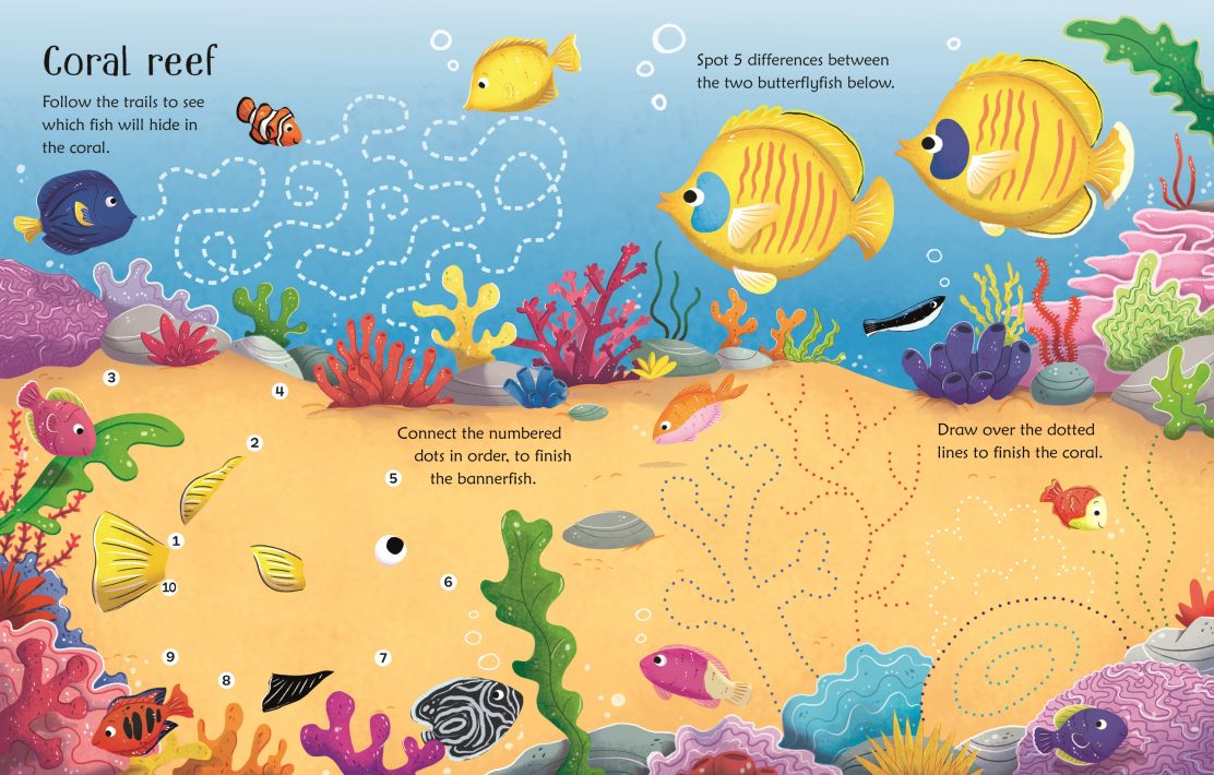 Join the dots, spot differences, solve mazes and trace the dotted lines in this vibrant aquarium-themed book. The fun activities will give young children plenty of practice in pen-control - an essential skill they must learn before starting to form letters and numbers. Shiny wipe-clean pages mean each activity can be enjoyed again and again.