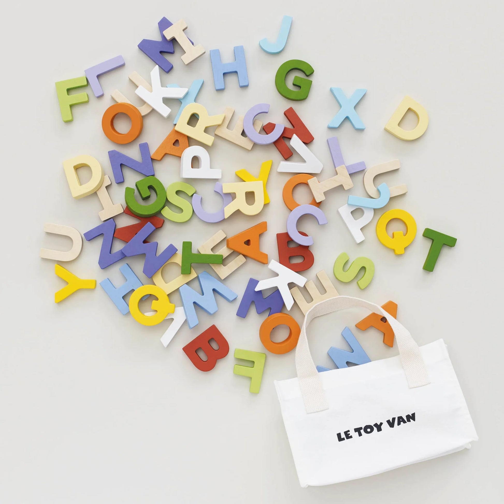 Spell your way to success with this lovely letters set for little wordsmiths. Crafted from sustainable, FSC® - certified wood, this 60 piece set is painted in sweet rainbow shades using child safe, water based stain. Learn the alphabet and form simple words with this delightful, plastic free toy, perfect for pre-schoolers and beyond. Complete with a cotton handled storage bag for stowing away safely at the end of a busy play session.